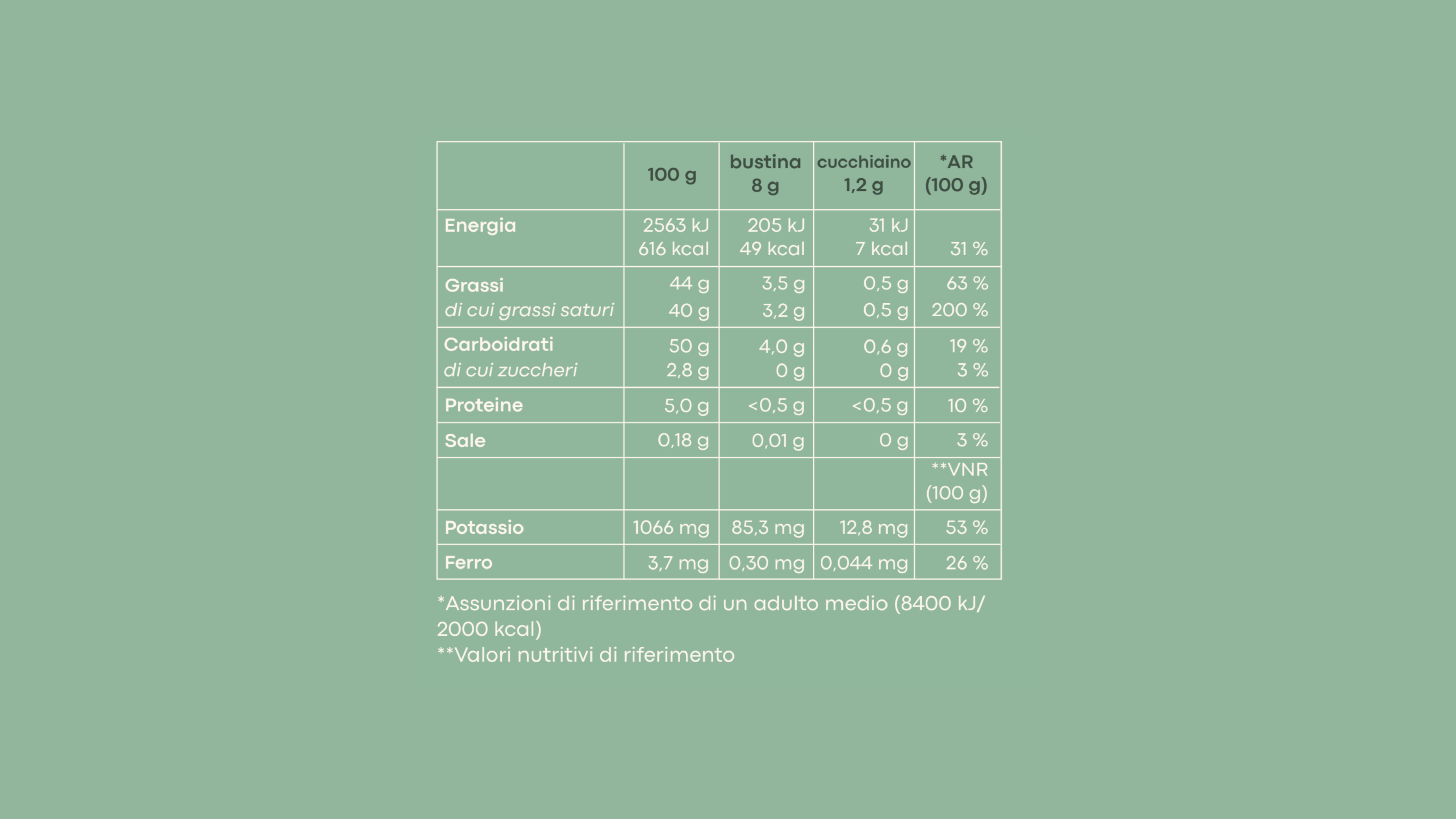 - 100% Naturale: solo 2 ingredienti, senza additivi, vegan e gluten-free, pensata per adattarsi a ogni stile di vita.